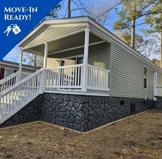 Outside, custom wood porches extend the living space, while fresh landscaping and faux stone skirting enhance the home’s curb appeal. This home is truly move-in ready, and qualified buyers may be able to move in within one week with the required down payment.